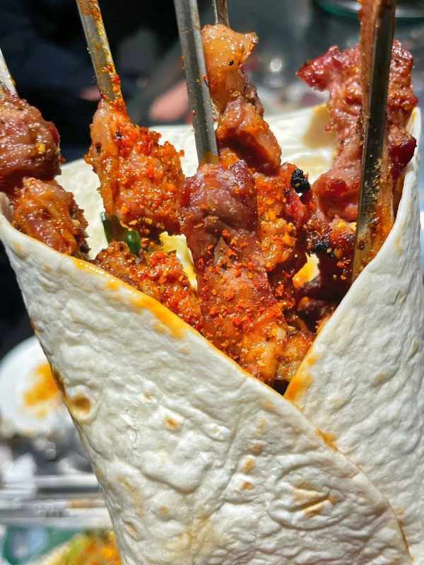 因為孫堅的打卡,這傢西安老餮私藏的烤肉館子人氣又上瞭幾層樓。以前錯峰去還有座,現在晚上十點左右肉都賣完瞭。
