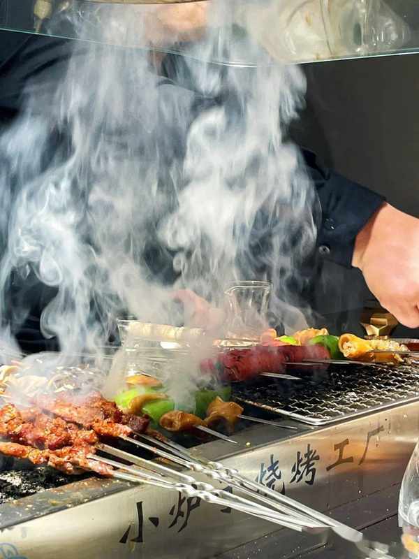 淄博同款小火爐子燒烤,直接炭烤還沒油煙味,排風一級棒!肉很新鮮沒得說,還有各種醃好的排骨、肥腸、牛肉,種類豐富的讓人應接不暇。