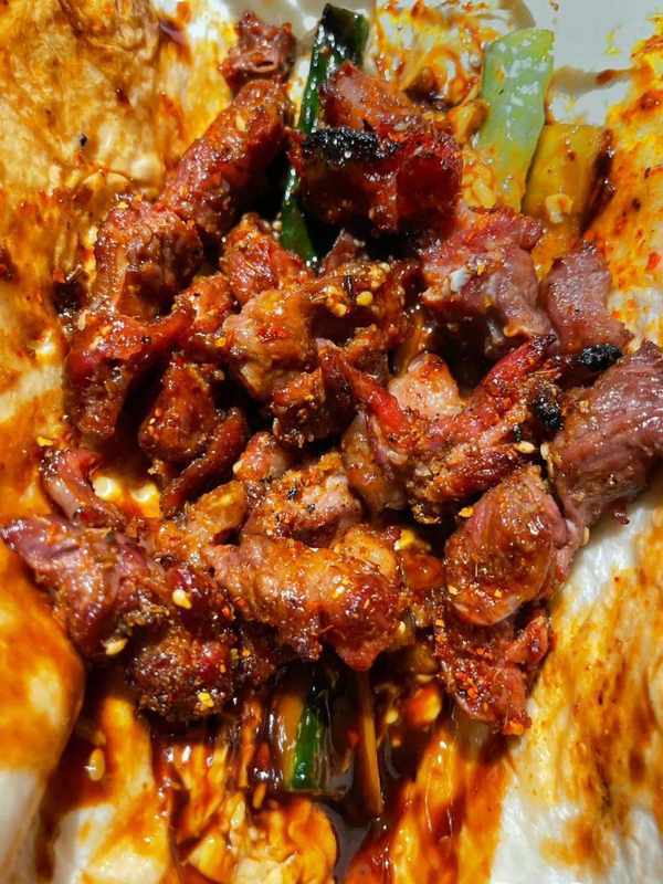 強推蒜香牛肉、黑椒排骨和無骨鴨掌,直接烤,都不用過分撒料,肉香味美,沒毛病!就是老板目前還沒上卷餅,建議趕緊上架!