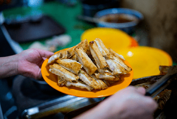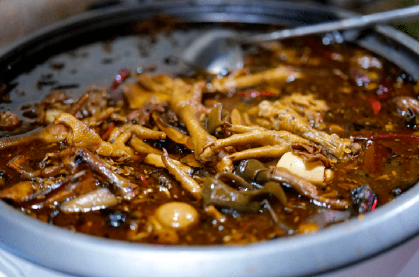 他傢烤肉肥瘦混搭,烤到微焦的程度,吃起來特別爽快,有過去路邊炭火烤肉的味道。鹵味也是必點,雞爪超好吃。