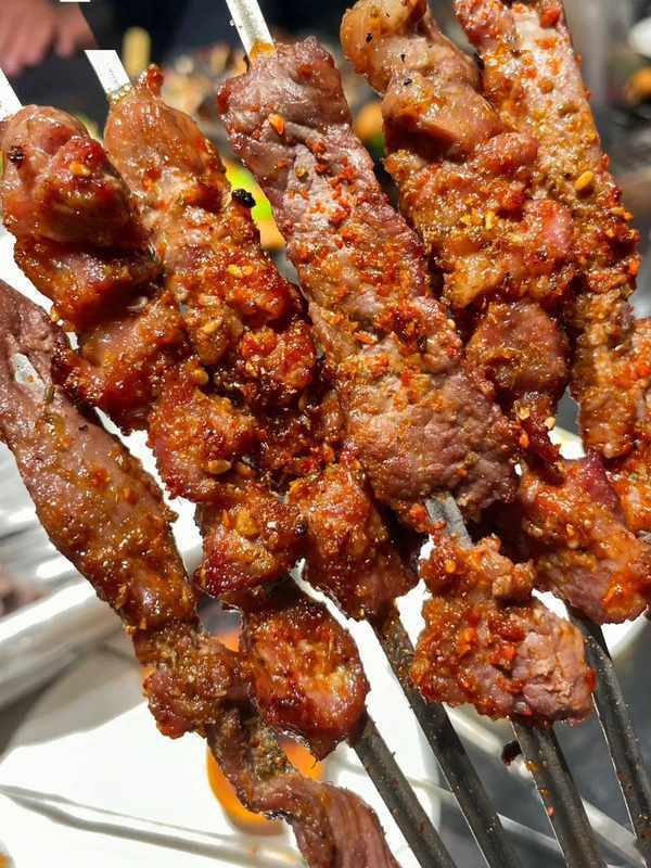 必搶的當然是烤肉筋、烤腰子,煙火氣十足;肉筋肥瘦相間,一口流油,肉串越擼越爽!再加個饃吃美滴很!