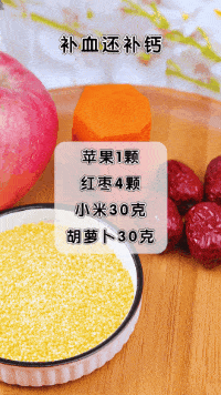 小米粥裡加入瞭蘋果、紅棗,甜甜的口感還帶有一股清香,寶寶喝一口還想喝,關鍵是健脾養胃,還能幫助寶寶預防積食哦!切記小月齡寶寶打成糊糊,大寶寶煮爛之後直接喝!