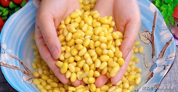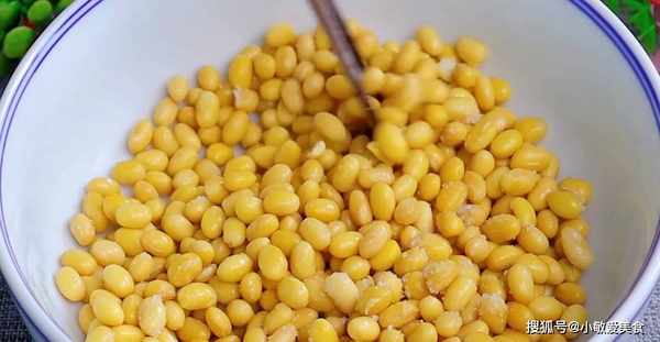 1、首先準備300克黃豆,倒進大碗裡,往裡面倒入沒過黃豆的清水,把黃豆浸泡五個小時以上。
