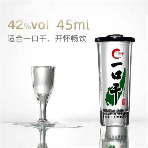 據悉,二得子一口幹容量為45ml/杯,屬於光瓶酒市場細分賽道的小酒品類。自2022年上市以來,二得子一口幹在小酒市場迅速嶄露頭角,成為不少消費者優先選擇的二鍋頭酒產品。
