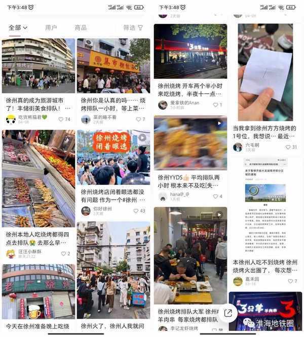 因此,當“淄博燒烤”在各大社交平臺持續霸榜,“徐州燒烤”也熱瞭起來,一度反超淄博登上微博熱搜榜榜首。