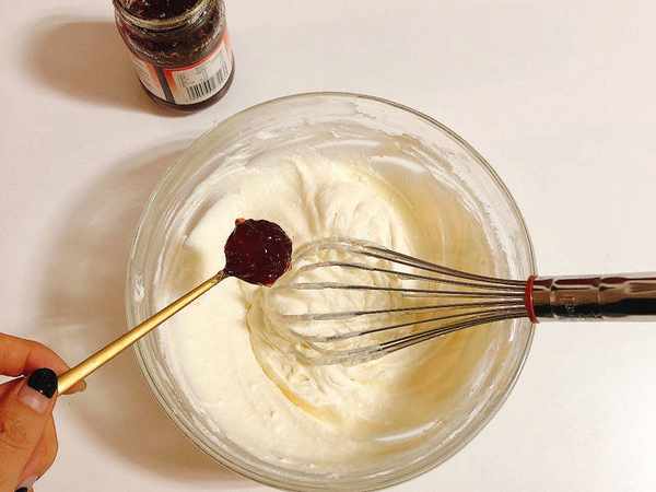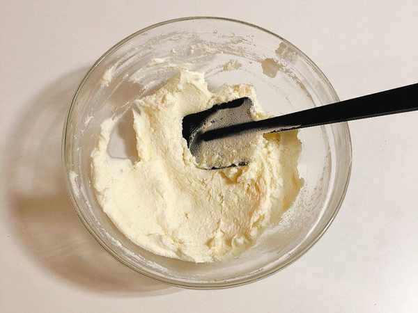 4、室溫軟化的奶油奶酪➕糖攪拌順滑