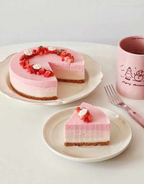 誰會不愛這粉嫩的漸變色⁉️酸酸甜甜的草莓味,入口即化,即使沒有烤箱也能做出高顏值甜品~