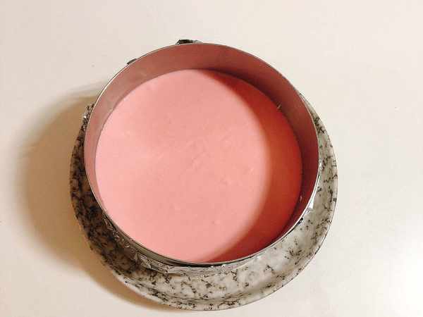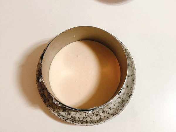 10、其中1份倒入餅幹底模具中,冰箱冷凍10分鐘