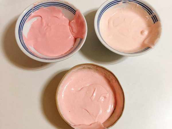 12、顏色由淺至深倒入模具(每倒一個色都要冷凍10分鐘),最深的顏色倒完後冷藏4小時至凝固