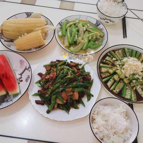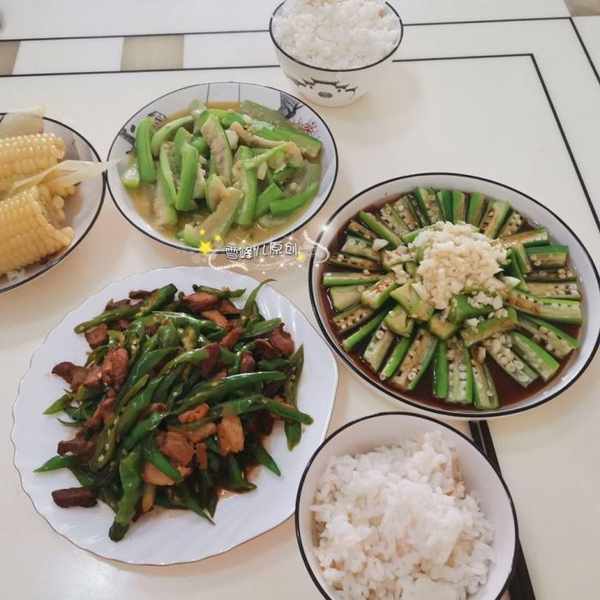 午餐,我選擇了這個季節上市的白糯玉米和米飯作為主食,秋葵和絲瓜作為常態的蔬菜,當然不能少。其實絲瓜和秋葵都是立秋之後才結果越來越多。味道和營養都很棒,做法也很簡單。今天就和大家分享這些菜肴的做法,就是廚房小白也可以輕鬆駕馭。