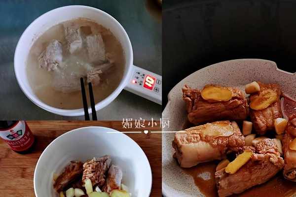 做法:①、排骨剁小段,清水裡加1湯匙料酒,放入排骨浸泡10分鐘,去除血水,料酒還可去腥