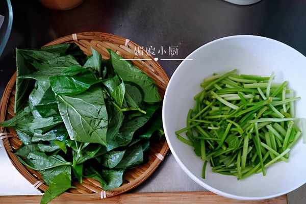 紅薯葉是夏天裡很喜歡的一種蔬菜,三兩分鐘大火爆炒幾下就好,吃起來又香又嫩還有一點滑滑的口感。
