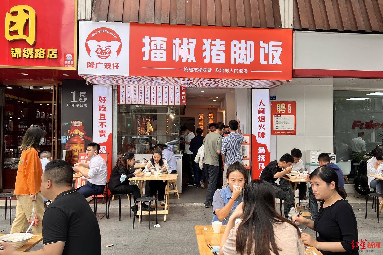 武侯區錦繡路“隆廣波仔·擂椒豬腳飯”的老板怡小波告訴記者,他1995年到廣東打工,學粵菜,也專門做過豬腳飯,一去就是20年。2016年回到成都做餐飲,一開始做串串火鍋,生意越做越大,但後來在奎星樓開火鍋店虧瞭上百萬,於是轉變思路。