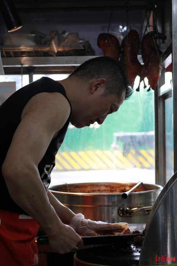 龍勝兵回憶,2016年至2018年,隆江豬腳飯開始逐漸被成都人接受,尤其受到上班族的喜愛。他的手藝也不斷精進,如今一眨眼工夫,就能迅速把一份豬肘切片。“那幾年也是我帶徒弟最多的時候。”