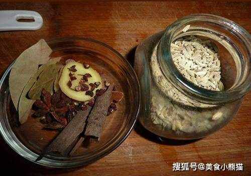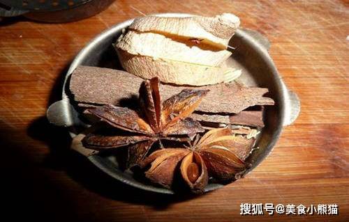 配料:大料2個、花椒一小勺、桂皮一塊、香葉2片、茴香一小勺(約3g) 、生薑4片