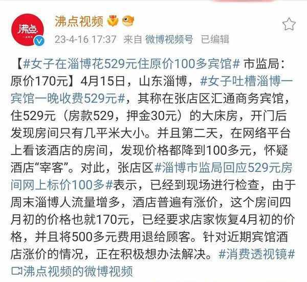 雖然近日流出淄博政府管控價格的現象,比如某賓館房間平時100多,高峰期漲到500,然後市監局強行要求店傢降回原價,並退錢給消費過的遊客。