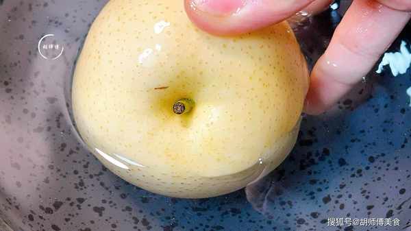 第二步:把雪梨放入到水中,然後將雪梨皮搓洗幹凈後沖洗幹凈,接著再把雪梨切成骰子大小的塊狀備用。