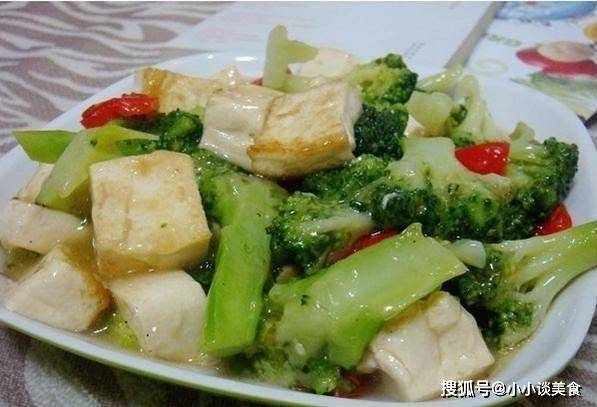 材料:西蘭花、豆腐(用咸豆腐代替絲豆腐)