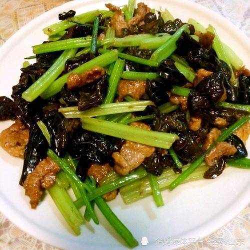 三. 芹菜黑木耳炒肉絲:芹菜富含鈣質和維生素K,有助於骨骼健康,而黑木耳則含有豐富的鐵質和維生素D,有利於補充營養。