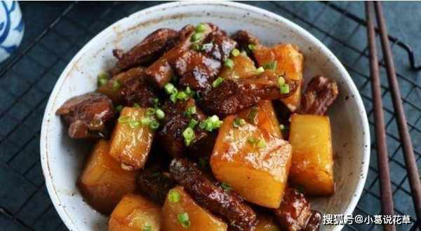 材料:排骨2條、土豆2個、生抽2湯匙、老抽1湯匙、冰糖1條、胡椒粉、八角、蠔油1湯匙、薑2片、小蔥