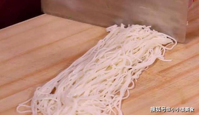 4.用刀把面團切成小塊。如果它們太長,它們會纏結並且難以管理。5.將面團放入碗中後,用抹刀將面團壓平。