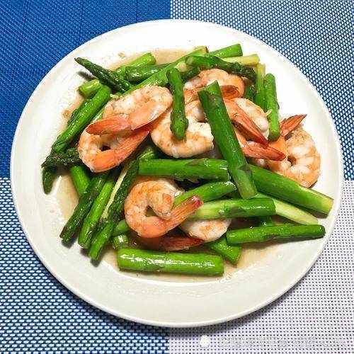 食材:蘆筍300克、蝦?200克、黑胡椒粉1勺,鹽2克,蔥花少量,料酒10克,薑絲少量,植物油3勺;