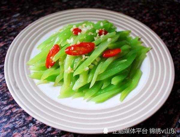 食材:萵苣、青椒、紅椒、蒜瓣、小蔥、食鹽、雞精、老抽、生抽