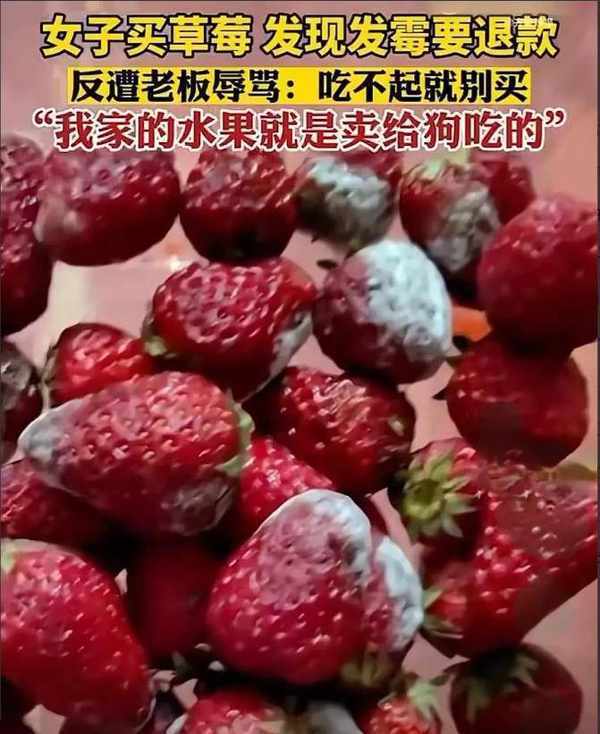 她一眼就看中瞭這些鮮紅的草莓,而且價格不貴,於是她興高采烈地買瞭一盒回傢。當蒲女士回到傢後,打開一看,她的心情立刻就涼瞭下來。那盒草莓隻有外面一層是好的,裡面全都是發黴的爛果,氣得她直跺腳。第二天,蒲女士來到瞭水果店,想要和店傢討個說法。起初店傢表示不可能,說肯定是自己把草莓弄壞瞭。蒲女士很清楚自己並沒有弄壞草莓,於是她拿出瞭當時拍的視頻讓店傢看。店傢看完視頻後,意識到瞭問題的嚴重性,於是讓蒲女士再去挑選一盒草莓。可沒想到挑選的這盒,打開一看裡面也全是壞的。她頓時有些怒火中燒,表示自己不要瞭,讓店傢退錢。可是萬萬沒想到,店傢不但不退錢,還大罵蒲女士是個窮鬼,吃不起就別買。這一下子可把她氣壞瞭,立刻拿起手機報瞭案。