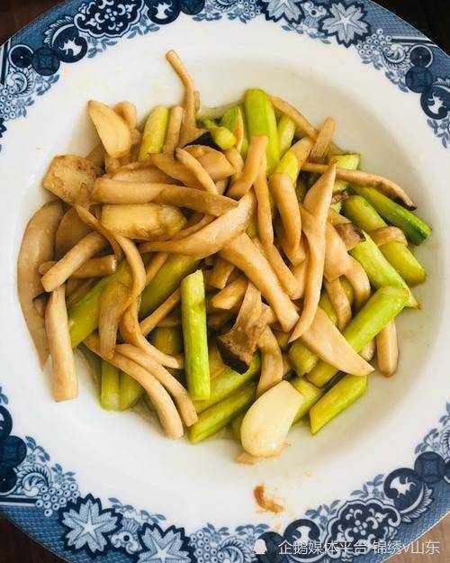 1、 蘆筍去掉硬根和外皮,清洗幹凈後切成斜刀段,杏鮑菇洗凈切條,大蒜切片備用。
