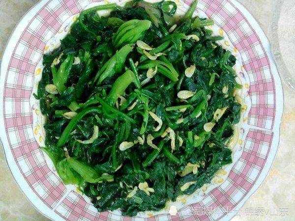 3. 一盤焯過水的菠菜,一碟半潮不幹的蝦皮;