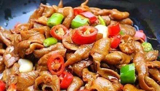 原料:肥腸1000克,紅青椒50克,植物油50克,紅油、精鹽、味精、蠔油、豆瓣醬20克、辣椒醬15克、醬油3克香油、醬油5克、白酒、八角、桂皮各8克,蔥5克,薑、蒜、幹辣椒各25克,鮮湯500克