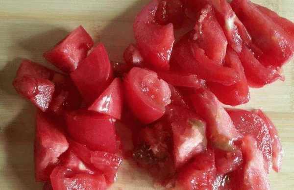 先將西紅柿洗凈,切成小塊,再將黃瓜洗凈,去皮切塊,盛入碗中待用。