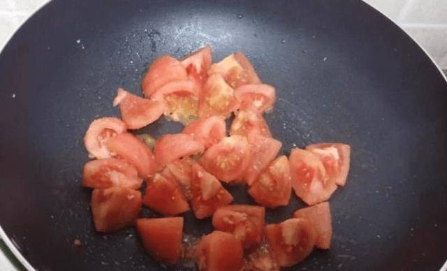 鍋置火上,鍋內倒入適量的油,待油溫升至50%時,即可將西紅柿倒入鍋中翻炒均勻,不斷攪拌,直至西紅柿出汁。