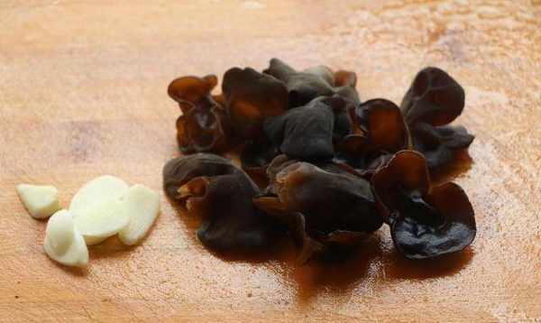 4、大蒜切薄片,香菇提前泡發,洗凈瀝幹;
