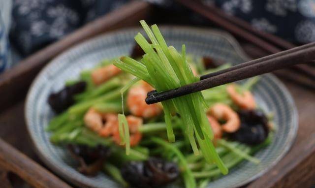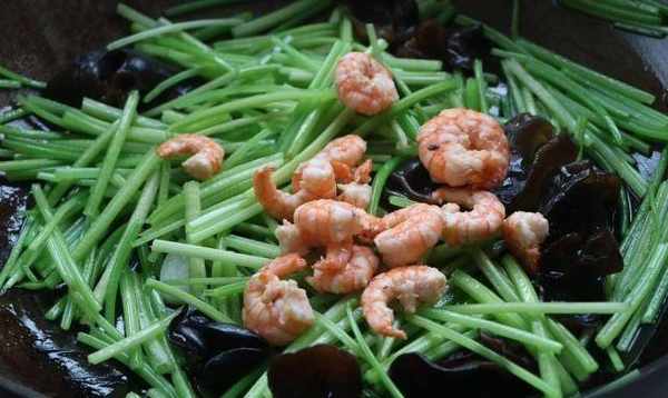 9、這種清香細膩的芹菜炒香菇蝦仁會不錯,特別好吃,營養豐富;