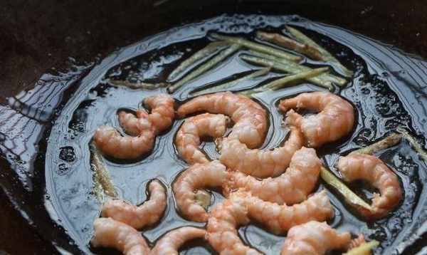 5、鍋中加入適量植物油,放入薑末和蝦仁翻炒至蝦仁變色備用;