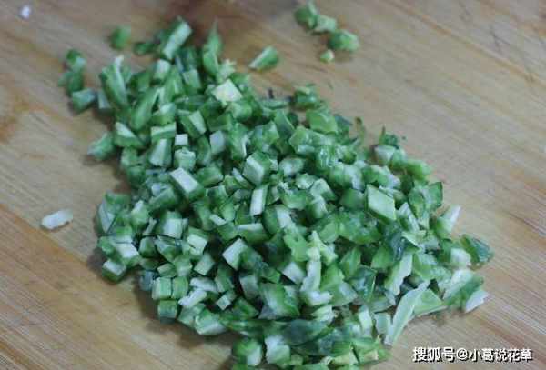 1.苦瓜洗凈對半切開,去籽切丁!如果你想減少苦味,你可以通過熱水來去除一些苦味。我們認為水位還不錯!