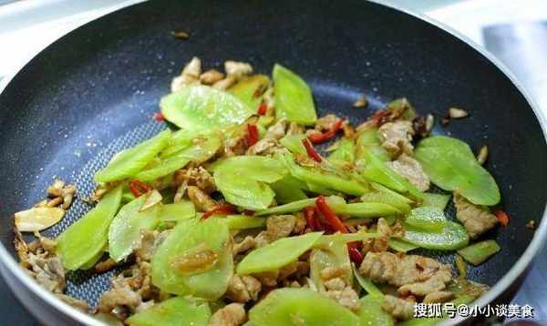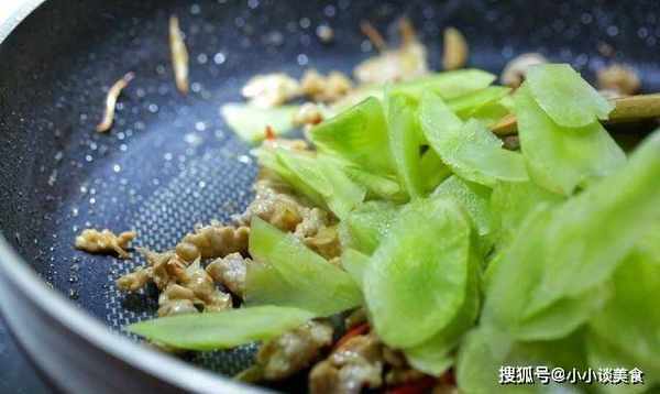6.加入生菜,生菜做起來很簡單,可以生吃,稍微翻炒一下,讓生菜變軟,不脆就失去瞭這道菜的樂趣。