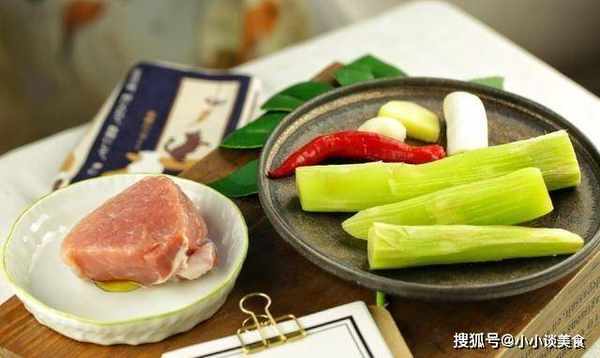 1.準備好所有材料,生菜刮去外皮洗凈待用。我們常吃的部分是生菜的根莖,但是生菜的葉子也很好吃,是另一種常見蔬菜生菜的近親。如果你買瞭帶葉子的生菜,切記不要把葉子扔掉。