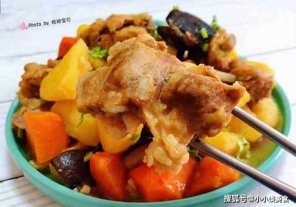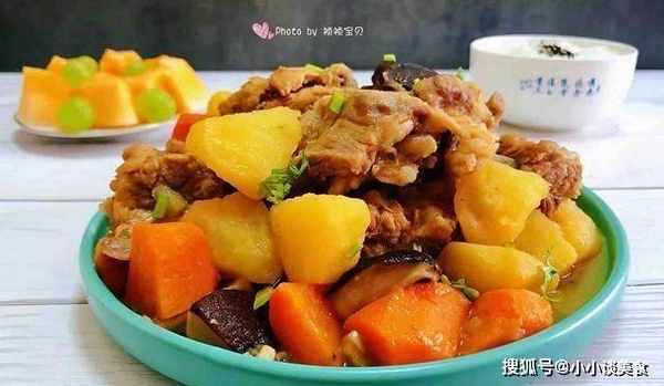 土豆、蘑菇和胡蘿卜燉排骨