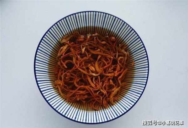 2、將曬幹的蟲草花用清水沖洗幹凈,放入碗中,加入適量清水浸泡5分鐘。蟲草花浸泡時間不宜過長,否則會造成營養成分流失。如果您使用的是新鮮的蟲草花,則無需浸泡。