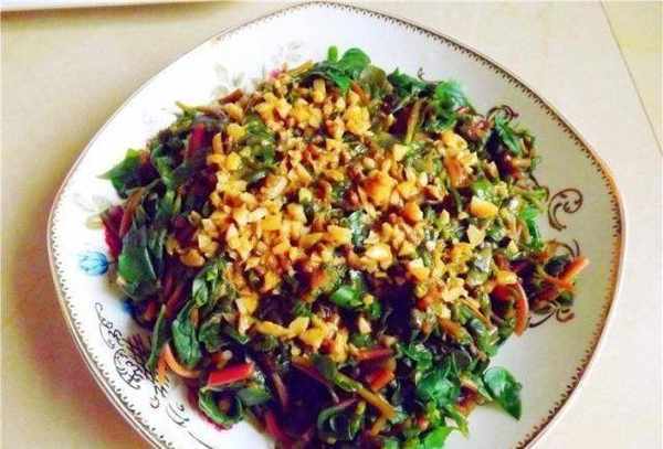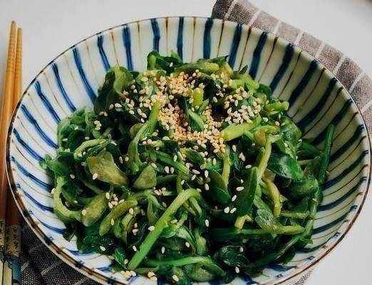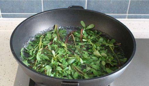 鍋中倒入適量的水,水燒開後,加入少許鹽和油,拌勻,然後將馬齒莧放入水中焯水30秒到1分鐘左右。當馬齒莧煮熟變色時,就可以捕撈瞭。然後將馬齒莧冷藏冷卻,瀝幹水分裝盤備用。