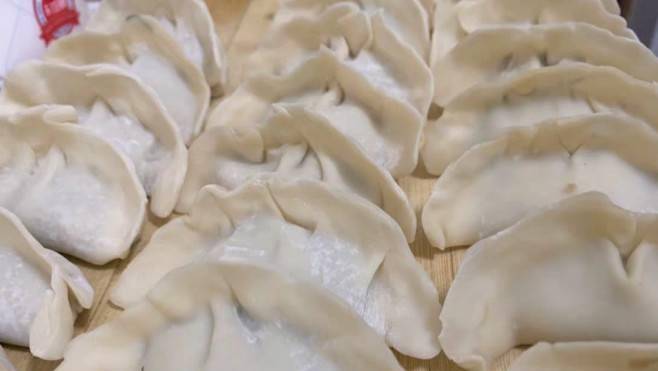 這時候揉好面團後,把面團切成長條,小批量的做。將所有面團揉成面團後,將餃子餡放在上面,然後包成想要的形狀。鍋中燒開熱水,將餃子放入鍋中,連續倒三遍水,煮沸後即可食用。