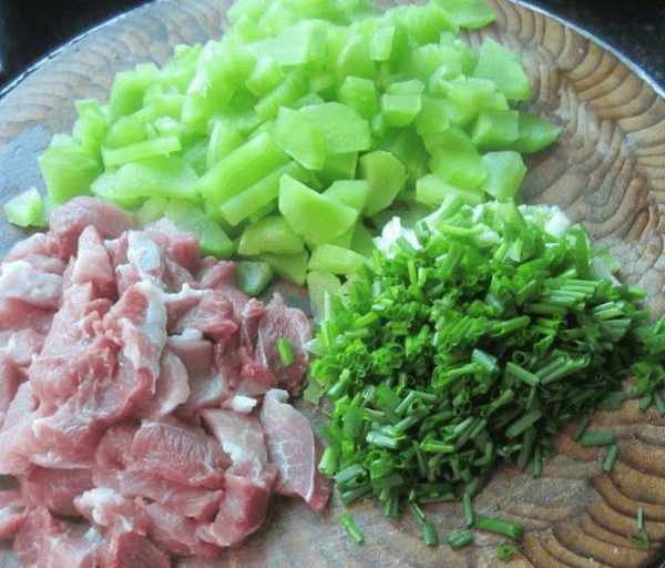第二步:最後將準備好的瘦肉放入碗中,倒入適量泡水,將豬血泡發。豬肉泡水後撈出,切成方塊。當所有的原料都切好後,將肉和沙拉放入攪拌機中打成泥。將材料打成泥後,加入適量的香蔥和鹽,然後快速攪拌以增加肉餡的風味。味道更好。