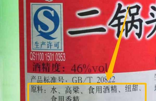 隻要配料裡出現:食用酒精一類的字眼,那麼,這瓶酒就不是純糧食酒,註意區分。