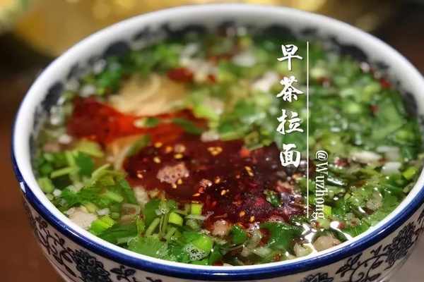 吳忠人喝早茶吃拉面的學問很多:喝湯的拉面、吃肉的拉面、喝茶的拉面、醒酒的拉面……再加上黃瓜、酸豆角、土豆絲、小青、咸菜等十幾樣爽口小菜,牛肉以及攤餅、燙面油香、烤饃等,聊聊天、品品菜,就這樣迎接新的一天。