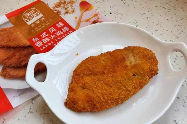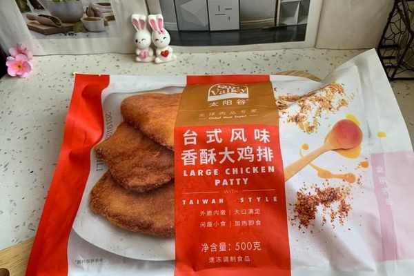 1、先是準備好臺式的香酥雞排,這個是大雞排,直接從超市買回來放在冰箱。但是在炸的時候要提前將雞排拿出來,也不需要提前解凍,還是很方便的,有的雞排是有不同味道的,自己根據喜好來選擇就行瞭。