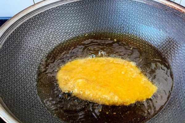 5、雞排放進去後先不要翻面,先將下面的一邊炸好,大概需要炸2分鐘,然後再將雞排翻過來,繼續地炸另外一邊,還是大概炸2分鐘。
