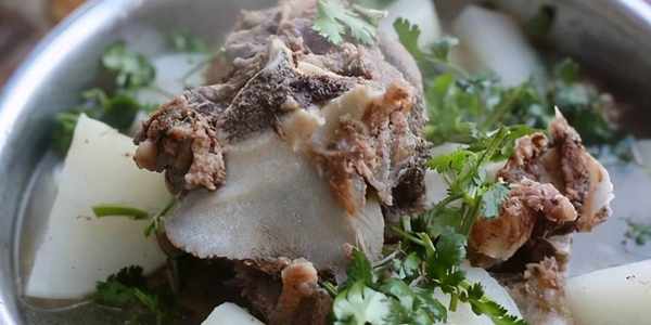 【所需食材】:主料:牛脊骨。輔料:白蘿卜,薑片,八角。調料:料酒,鹽,胡椒粉。
