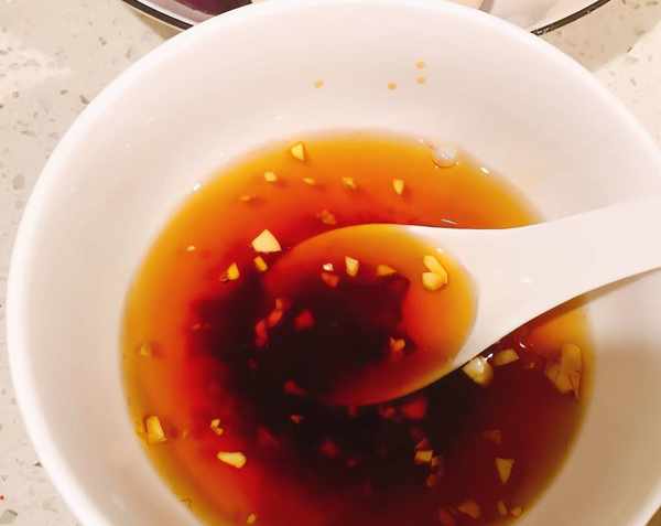 2、香蔥切蔥花、大蒜切蒜末。小碗裡放入蒜末,加入一勺生抽、一勺蠔油、半勺白糖、半勺淀粉,再加入2勺清水攪拌均勻,調成料汁。